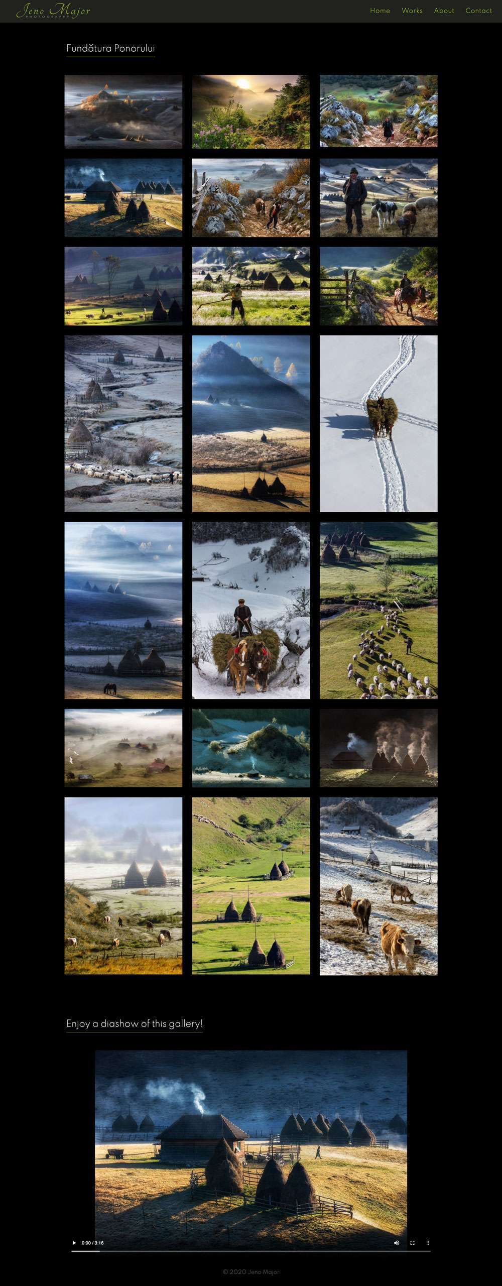 Das ist die Webseite des erfolgreichen und renommierten Fotografen Jeno Major aus Rumänien! Es ist mir eine Ehre, dass er mir vertraut hat, ihm dabei zu helfen, eine Website zu erstellen, auf der seine atemberaubenden Landschafts- und ethnografischen Fotos präsentiert werden. Seine Arbeit hat die Essenz der Rohheit und unberührter Schönheit um uns herum eingefangen. Mein Ziel war es, eine Plattform zu schaffen, auf der sein beeindruckendes Portfolio in einem eleganten Design hervorgehoben wird. Diese Website sollte nicht nur ein Ort sein, wo man seine fotografischen Fähigkeiten bewundern kann, sondern sie sollte auch mit einem Online-Shop verbunden sein, in dem Sie Fotos kaufen und ein Stück seines Talents in Ihr Zuhause bringen können. Begleiten Sie mich auf dieser Reise, während ich dieses Projekt zum Leben erweckt habe.
